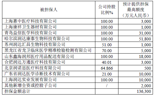 1、公司为公司全资及控股子公司向银行等金融机构申请总额不超过人民币136,300万元的综合授信提供连带责任保证担保,控股子公司其他股东提供对等担保或为公司提供足额反担保,公司实际承担出资比例对应的担保金额,详见下表:.png)