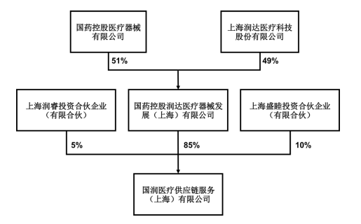 国润供应链系公司参股公司国药控股润达医疗器械发展(上海)有限公司(以下简称“国控润达”)与盛睦投资等其他股东共同出资设立。股权结构图为: