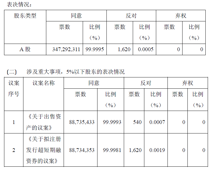 议案1为特别决议事项,已获得参与现场和网络投票的有表决权股东(包括股东代理人)所持表决权总数的2/3以上同意通过。议案2为普通表决事项,已获得参与现场和网络投票的有表决权股东(包括股东代理人)所持表决权总数的1/2以上同意通过。
